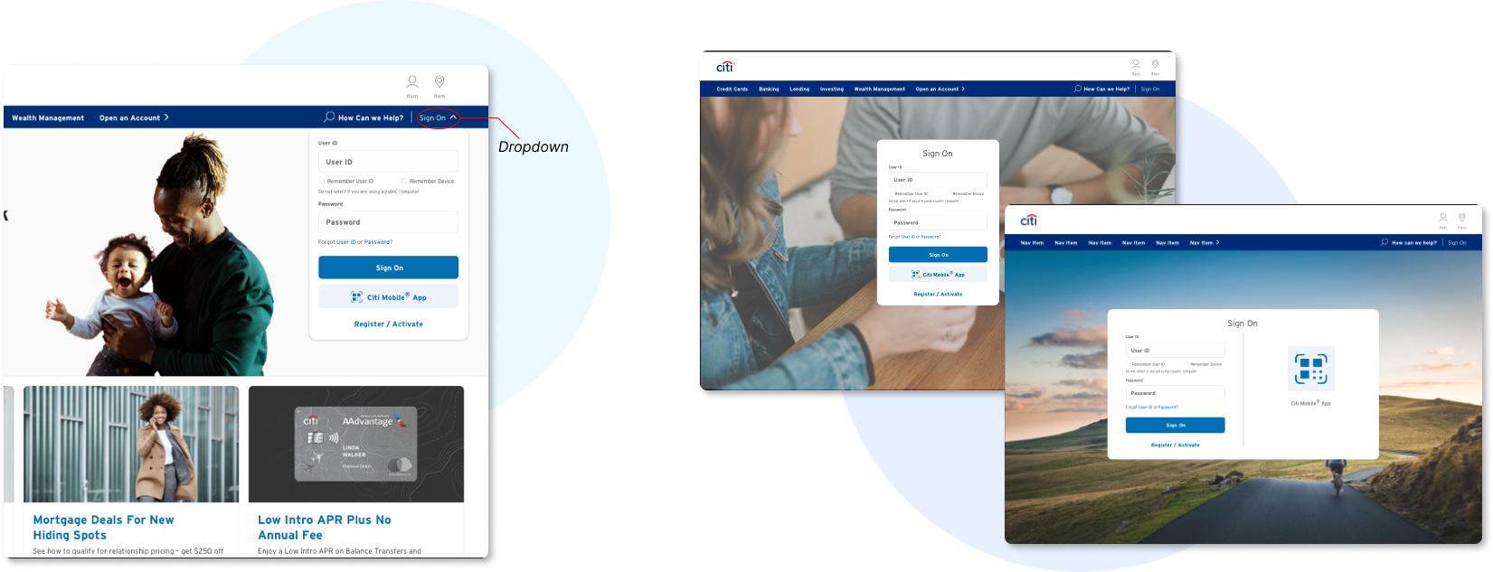 Introducing more secure sign on method, QR code. By redesigning sign on box Citi’s homepage, QR code is a primary option to sign on.