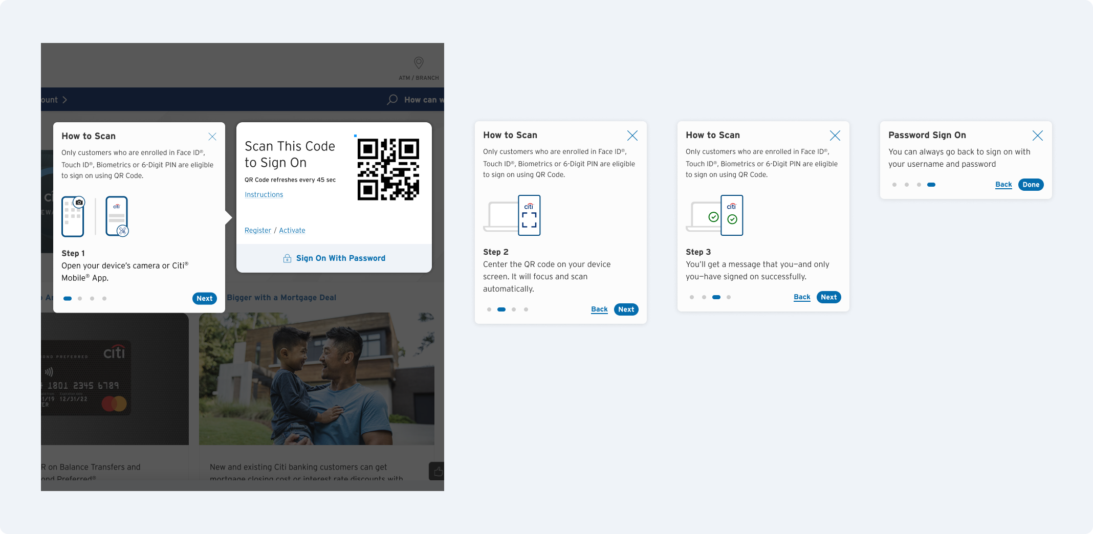 After a successful launch of the new sign on box, Citi wanted to pursue QR code as a primary sign on option for customers as QR code is a more secure experience that reduces interdiction & fraud.