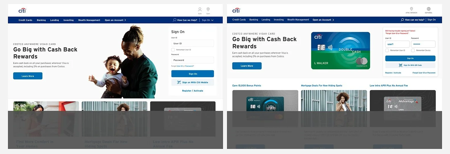 Citi introduced a QR code sign on as part of the user ID and password sign on. However, the initial introduction of QR code sign on in the original design didn’t catch the customers’ attention as much as Citi anticipated.